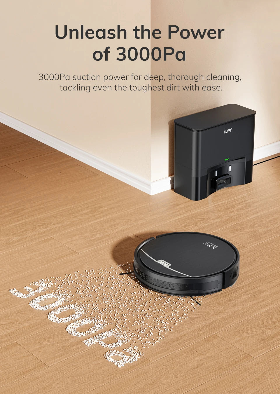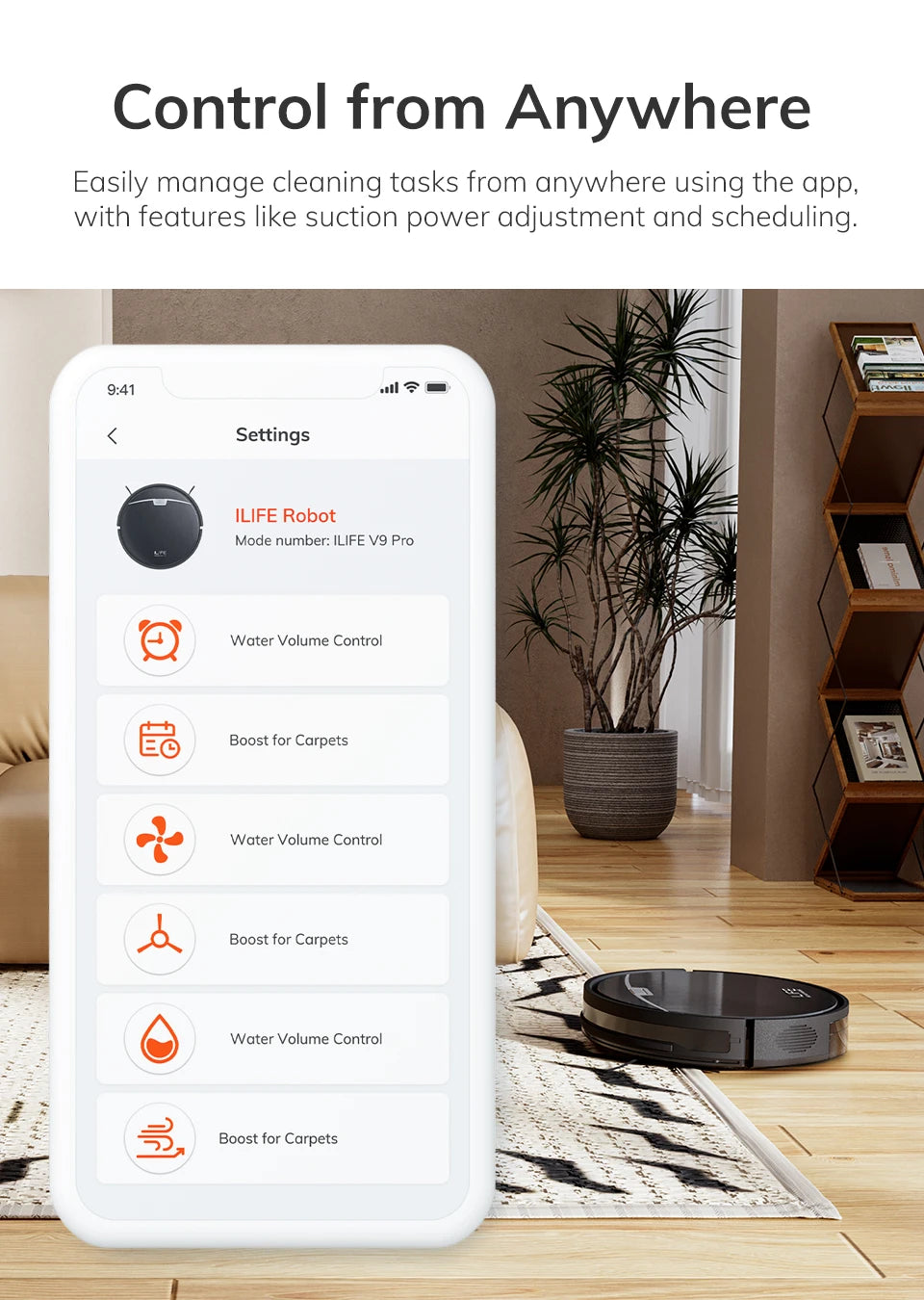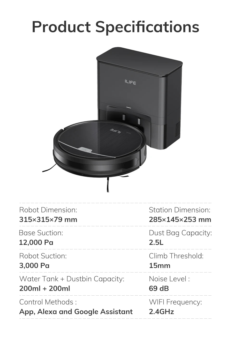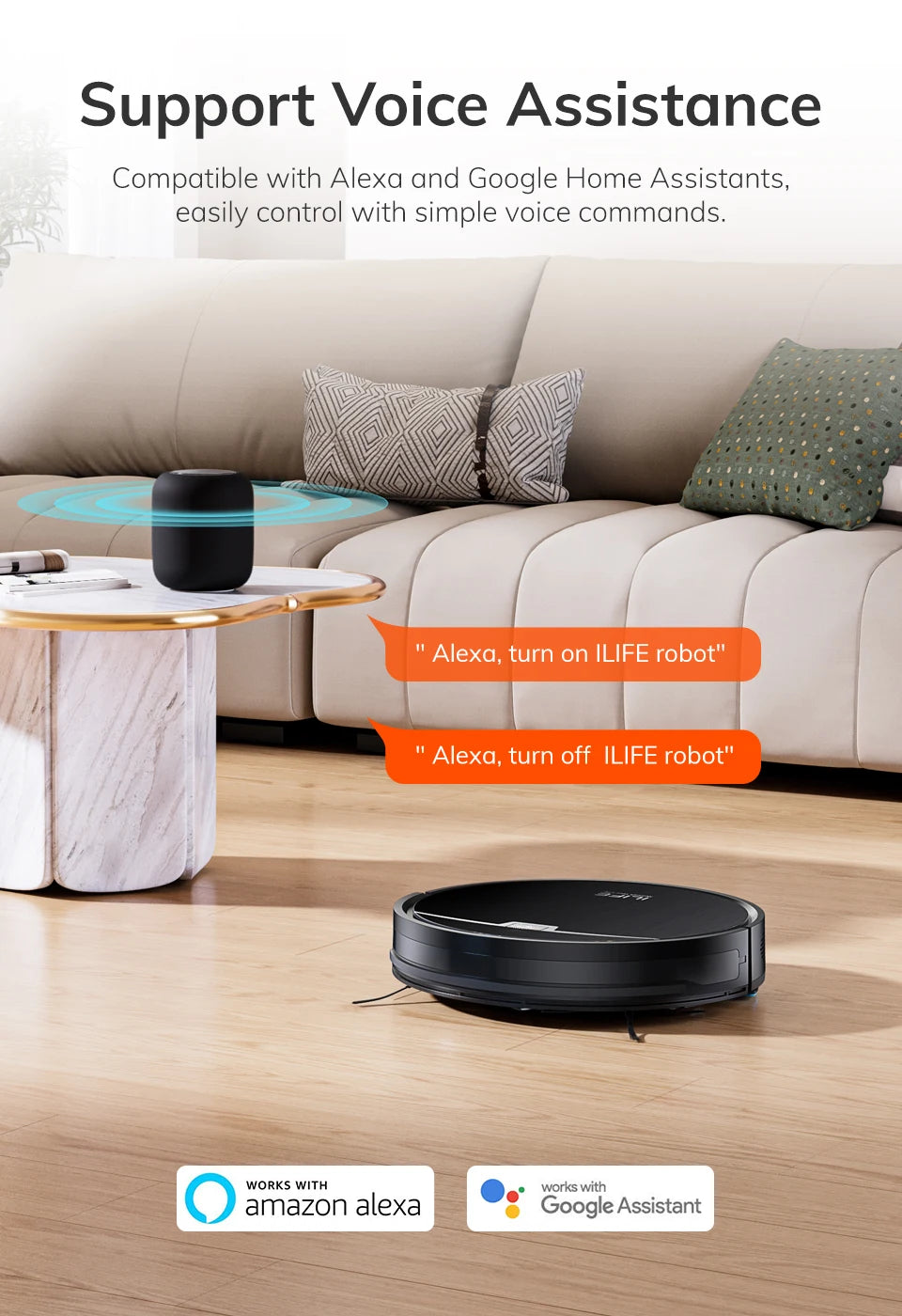 Aspirateur robot ILIFE V9/V9Pro, autovideur, aspiration puissante de 3000 Pa, navigation gyroscopique, programmation, contrôle par application/Alexa, pour poils d'animaux