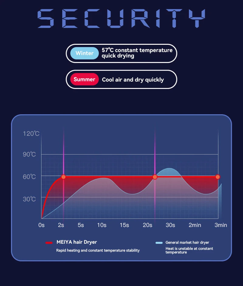 .Port de soufflage puissant, sèche rapidement les cheveux.