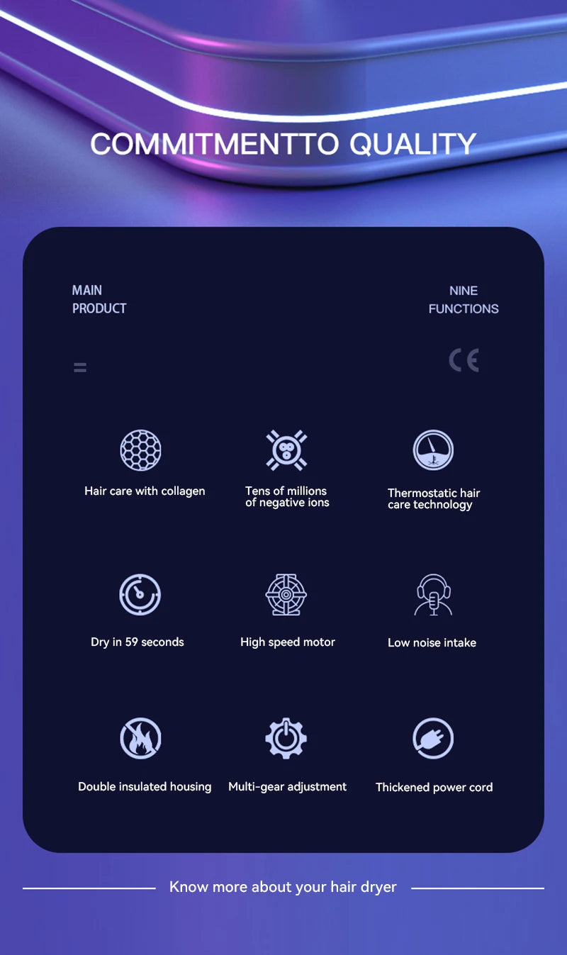 .Le moteur sans balai modulé à faible bruit peut apporter une expérience de soufflage agréable.